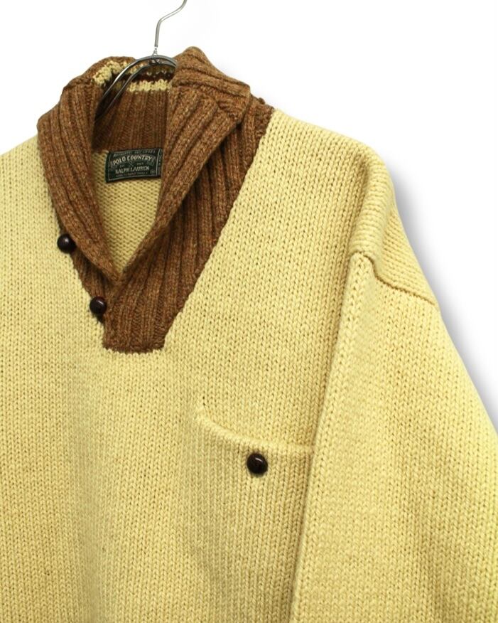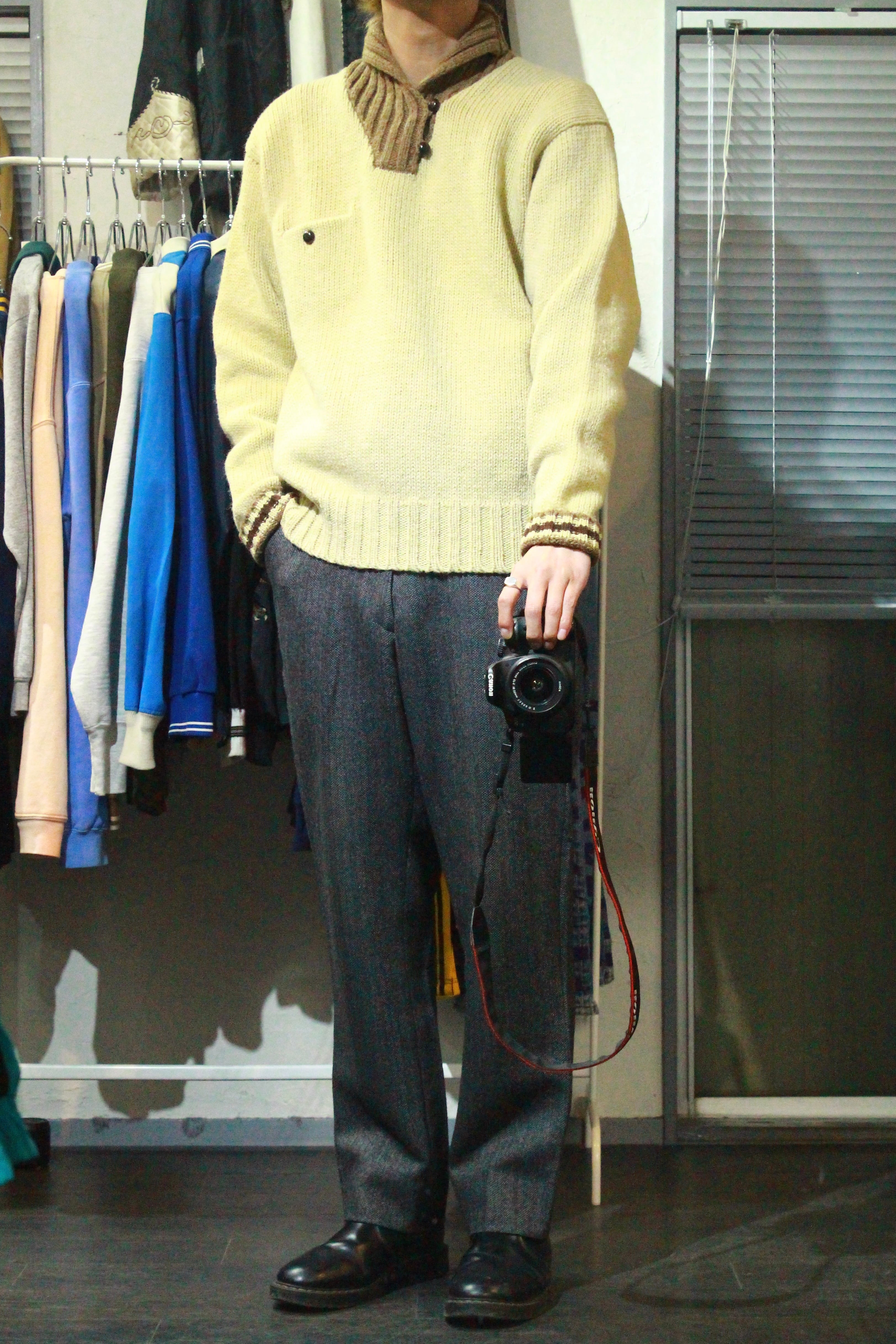 そんな貴重なポロカンから2トーンのデザインショールカラーのプルオーバーニットの入荷です。