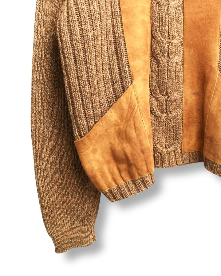 おそらく60年代頃のニットとレザーの切り替えデザインのプルオーバーニット。